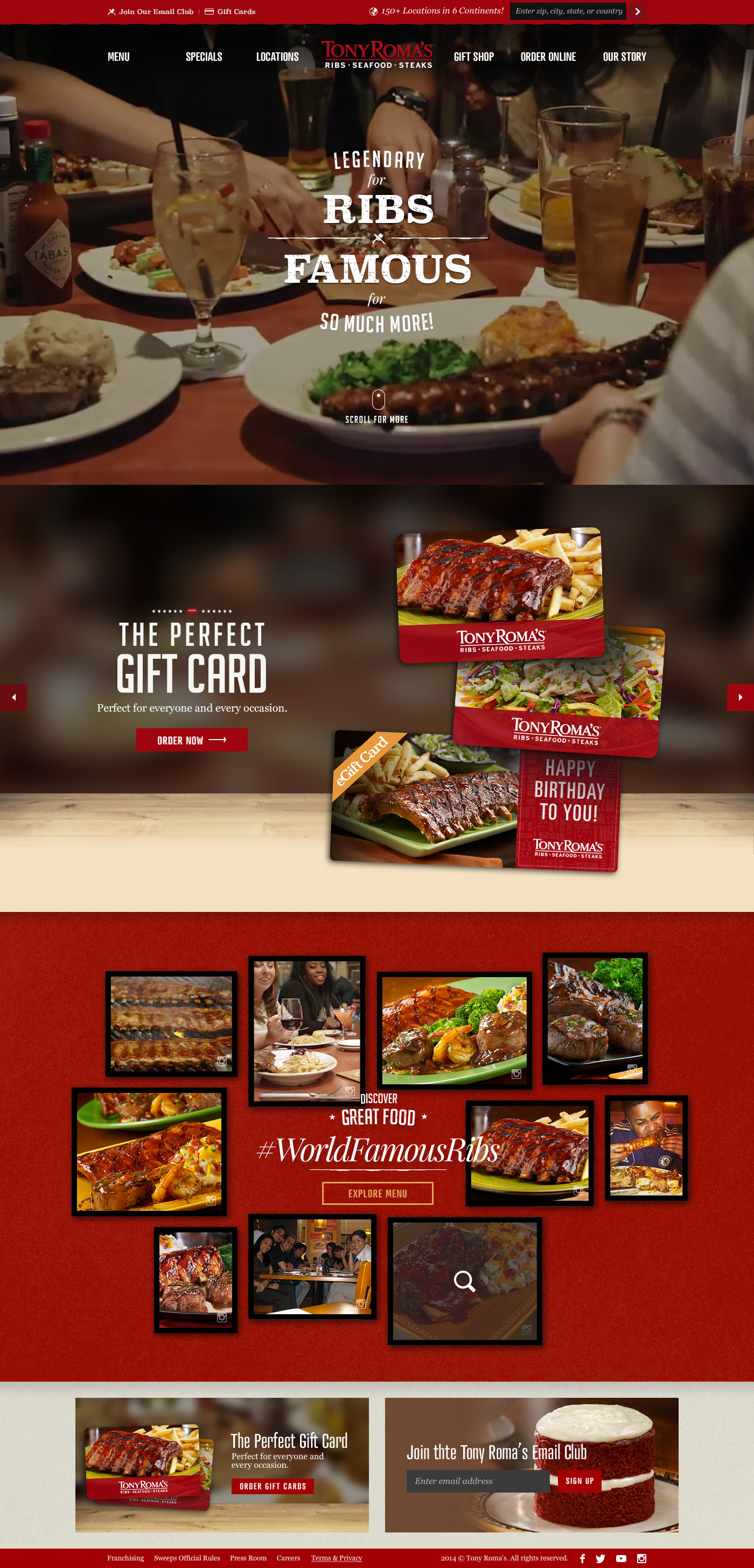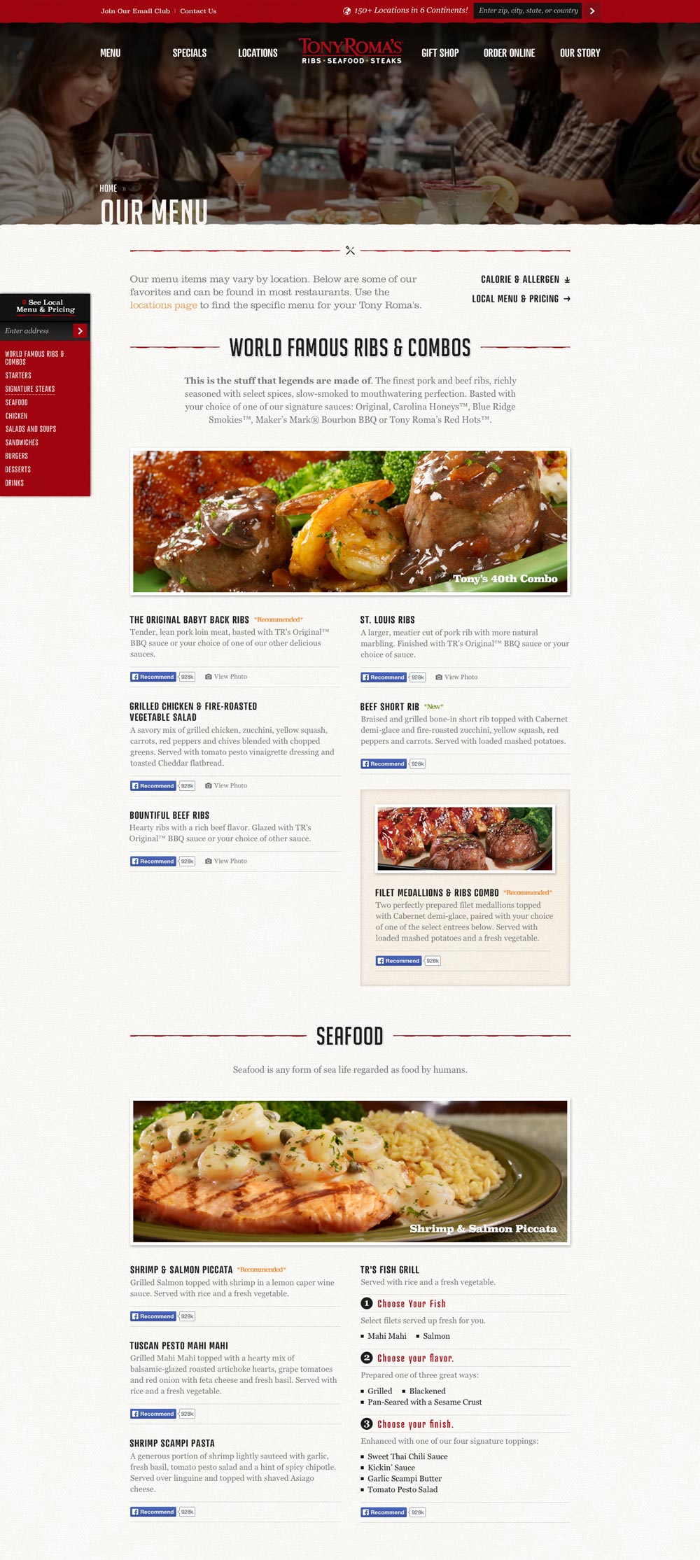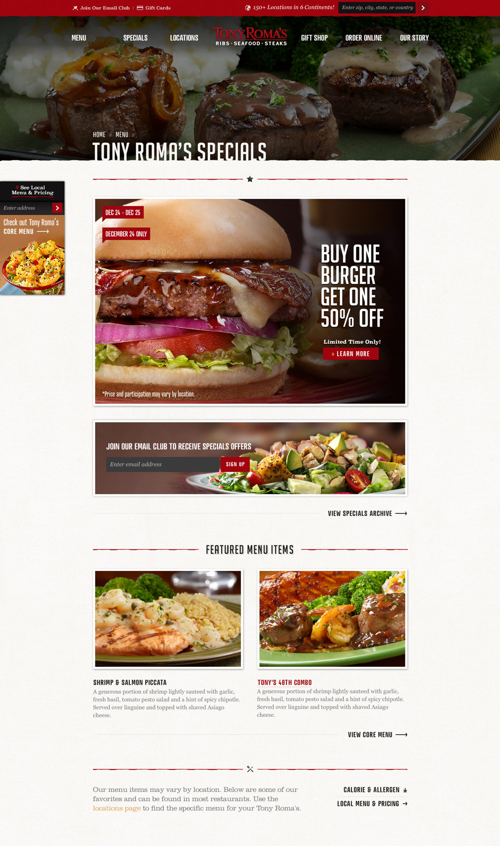 Vintage Americana designs inspired and influenced much of the typography throughout the site. In combination with food photography, each lockup strives to convey the tradition and the history of Tony Roma's.